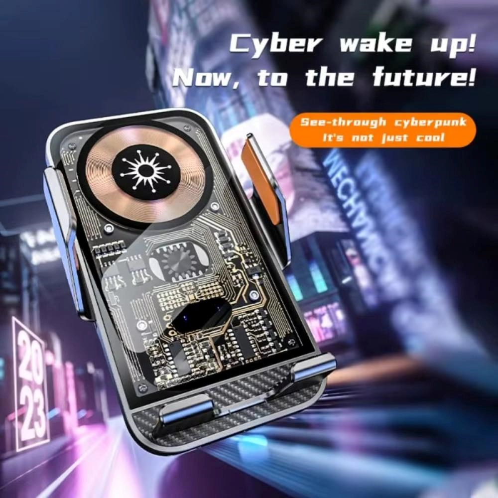 C10 Kvalitní hliníková bezdrátová inteligentní nabíječka do auta s optickým senzorem pro automatické rozevření při vkládání telefonu a dotykovým senzorem pro otevření držáku při vyjmutí. Vybavená je držákem s kloubovou aretací pro uchycení do ventilace.