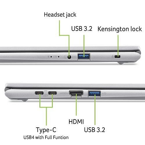 2x USB Type-C™ port supporting: USB 3.2 Gen 2 (up to 10 Gbps) / DisplayPort over USB-C / USB charging 5 V; 3 A / DC-in port 20 V; 65 W