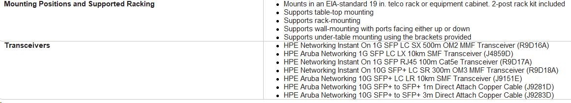 Mounting Positions and Supported Racking