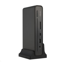 ASUS Triple Display USB-C Dock je elegantní a kompaktní zařízení, které usnadňuje připojení vašeho notebooku. Použitím jediného kabelu můžete napájet notebook, připojit se k síti a periferním zařízením a pracovat na až čtyřech monitorech současně, včetně monitoru notebooku a tří externích monitorů. Toto dokovací zařízení je vybaveno integrovanou čtečkou SD karet, což přispívá k jeho všestrannosti a je vhodné pro různorodé obchodní scénáře.