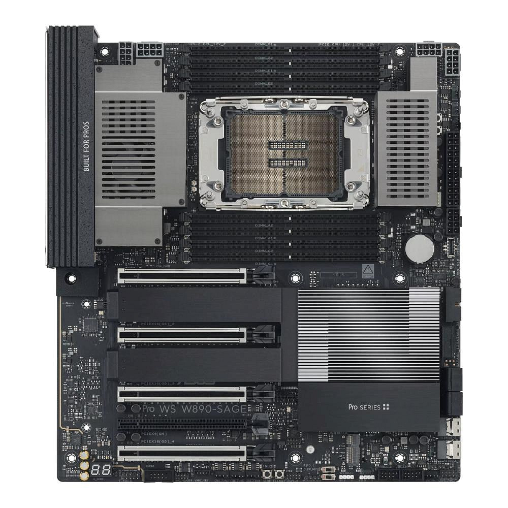 The Pro WS W890-SAGE workstation motherboard is deftly tailored for creative professionals, developers and engineers, unleashing the dominate performance of the latest Intel Xeon processors, with CPU and memory overclocking capability. Featuring an optimized memory trace layout, advanced power stage design, ready for server-grade IPMI remote management, and ultrafast PCIe 5.0 and networking connectivity, Pro WS W890-SAGE melds no-compromise engineering with incredible aesthetics, and comes prepared for a wide array of scenarios and industries.