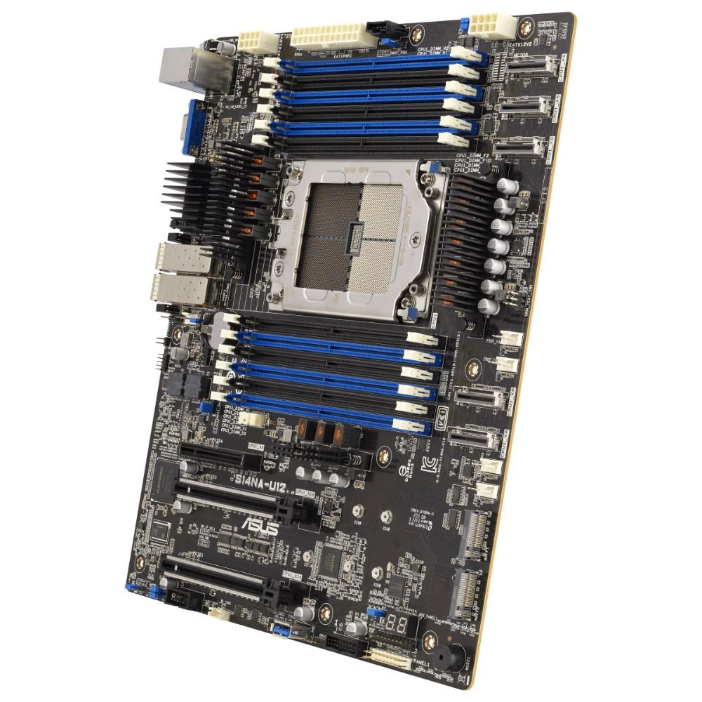 The ASUS S14NA-U12 is a high-performance server motherboard designed for data centers, cloud infrastructure, and edge applications. It supports AMD EPYC 8004-series processors (up to 64 cores and a TDP of 225 W) and offers robust network connectivity, extensive storage options, and remote management capabilities. Its form factor and design make it an ideal choice for reliable and powerful single-socket servers.