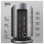 Hliníkové tělo nejen skvěle vypadá, ale zajistí i mechanickou odolnost a pasivní chlazení. Díky gumové podložce na podstavci zůstane stanice pevně na svém místě. USB-C hub je ideálním doplňkem pro notebooky bez USB-A konektorů a video výstupu. Díky funkcím Plug & Play a Hot Plug je samotné zapojení hubu velmi jednoduché bez složité instalace, a také lze jednoduše připojovat a odpojovat periferie za běhu počítače.