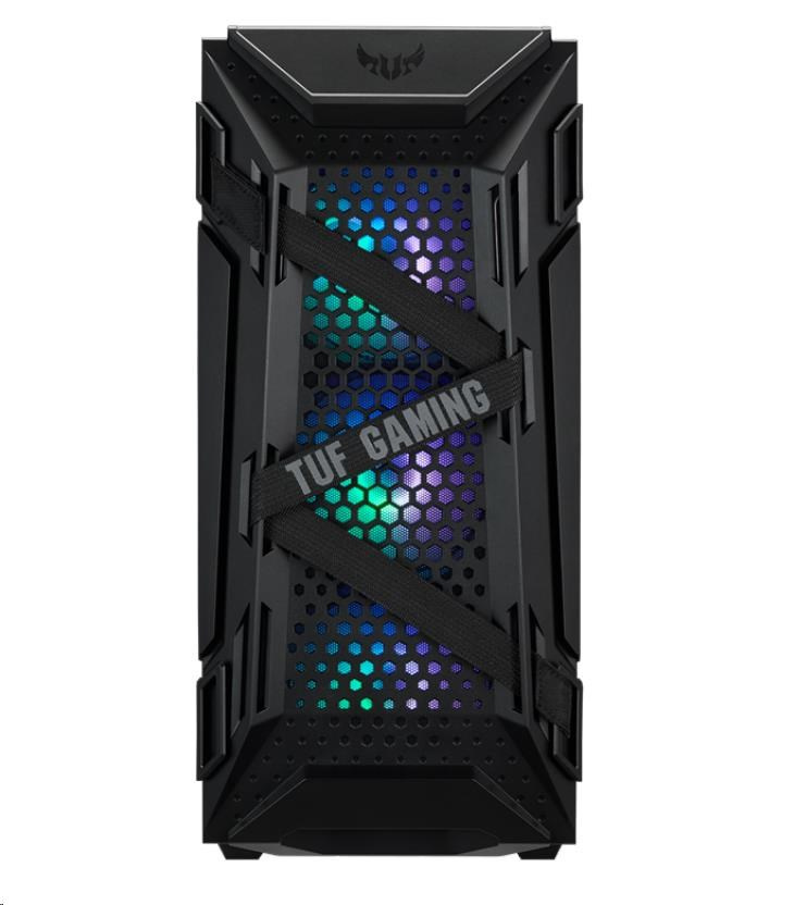 ASUS TUF Gaming GT301 ATX mid-tower compact case with tempered glass side panel, honeycomb front panel, 120mm AURA Addressable RGB fan, headphone hanger and 360mm radiator support.