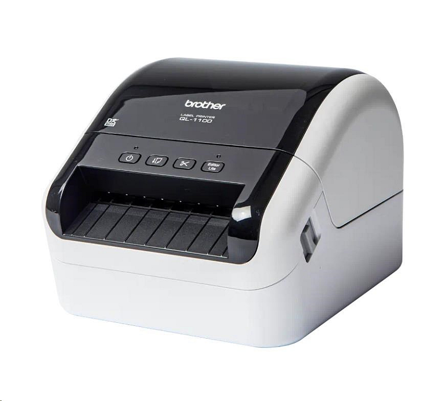 Tiskárna QL-1100 s pravou tiskovou hlavou o šířce 4 palce (101,6 mm) nabízí maximální kompatibilitu se softwarem třetích stran dodávajících balíčky.