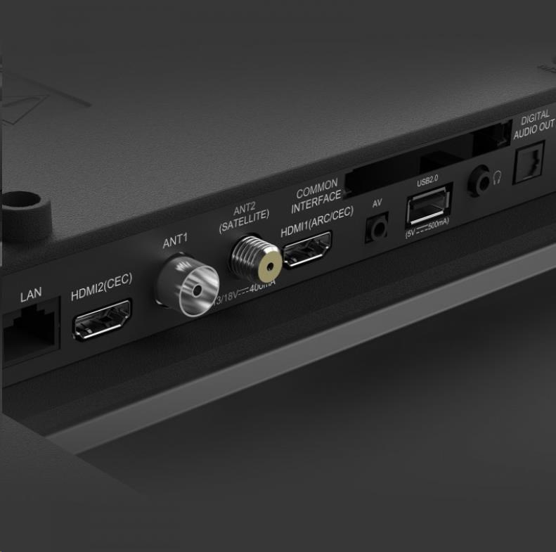 | Vstupy a výstupy | AV vstup mini, CI+, sluchátkový vstup 3.5 mm, digitální audio výstup, HDMI 1.4, USB 2.0, LAN, antény RF a LNB |