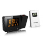 Meteorologická stanice se špičkovým inverzním barevným VA displejem s časem řízeným rádiovým signálem DCF-77, budíkem, měřením vnitřní teploty, bezdrátovým čidlem pro měření vnější teploty a projekcí času a vnitřní / venkovní teploty inverzní barevný VA displej o rozměrech 63 x 42 mm s možností stálého osvětlení při napájení síťovým adaptérem, nebo krátkodobým osvětlením na 15 s při napájení bateriemi 3 stupně jasu osvětlení displeje, možnost vypnutí osvětlení displeje s možností krátkodobého osvětlení na 15 s (při napájení síťovým adaptérem) lze nastavit až 70 barev displeje, nebo režim automatického plynulého střídání barev možnost rychlé volby 8 barev osvětlení displeje velikost číslic na displeji – čas 22 mm, datum, vnitřní a vnější teplota 10 mm, zkratka názvu dne 7 mm čas a datum řízené signálem DCF-77 s možností manuálního nastavení ikona příjmu signálu DCF-77 zkratka názvu dne 12ti, nebo 24 hodinový formát zobrazení času možnost nastavení časového pásma od -1 do +2 hodin budík s 2 budícími časy s funkcí opakovaného buzení (Snooze) po 5 minutách budící signál - 20 sekund 1 pípnutí za sekundu, 20 sekund 2 pípnutí za sekundu, 20 sekund 4 pípnutí za sekundu a poté stálé pípání střídavá projekce času a vnitřní a vnější teploty (teploty se střídají co 5 s) s možností otočení obrazu o 180°, možnost sklopení tubusu projektoru o 90° dopředu a dozadu barva projekce červená stálá projekce při napájení síťovým adaptérem s možností vypnutí 6 animovaných ikon předpovědi počasí (slunečno, polojasno, oblačno, srážky, silný déšť a sněžení) na základě sledování barometrického tlaku vestavěným barometrickým čidlem možnost nastavení výchozí ikony předpovědi počasí zobrazení hodnot vnitřní a vnější teploty paměť na maximální a minimální naměřené hodnoty teploty s automatickým mazáním v 0:00 hodin šipky tendence vývoje barometrického tlaku, vnitřní a vnější teploty indikace námrazy vnější teploty v rozsahu od -1°C do +3°C ikonou na displeji zobrazení teploty ve °C, nebo °F možnost použití až 3 bezdrátových čidel GARNI 029 (jedno čidlo GARNI 029 je součástí dodávky) bezdrátový přenos hodnot vnější teploty na frekvenci 433 MHz ikona příjmu signálu bezdrátového čidla USB port pro nabíjení mobilních zařízení (pouze při napájení hlavní jednotky síťovým adaptérem), maximální nabíjecí proud 1 000 mA ikony slabých baterií napájení síťovým adaptérem, nebo bateriemi možnost postavení barva černá Bezdrátové čidlo GARNI 029 vlhkosti odolné displej o rozměrech xxxxxx mm velikost číslic na displeji: teplota xxxxxx mm měření teploty 3 kanály maximální RF výkon 10 dBm (10 mW) možnost postavení a zavěšení barva bílá Obsah balení: 1 x hlavní jednotka GARNI 365 Arcus 1 x bezdrátové čidlo GARNI 029 1 x síťový adaptér český, slovenský, německý, anglický, italský, polský a maďarský návod.
