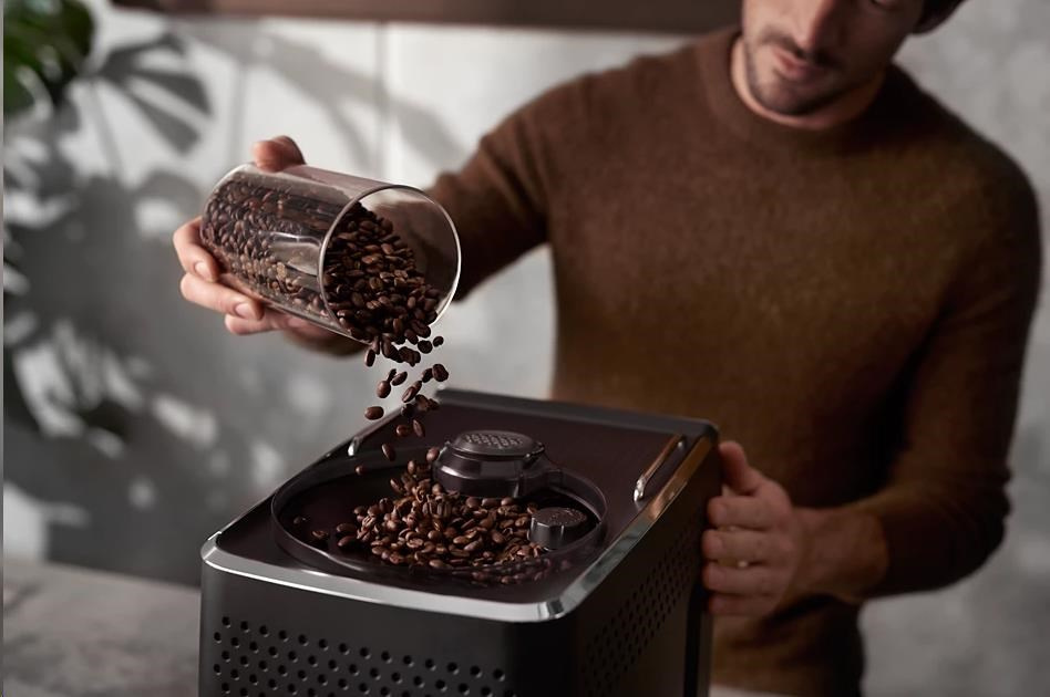 Velká nádoba na kávová zrna pojme až 300 g čerstvých kávových zrn a je vybavena speciálním těsněním AromaSeal pro dlouhotrvající čerstvost kávových zrn.