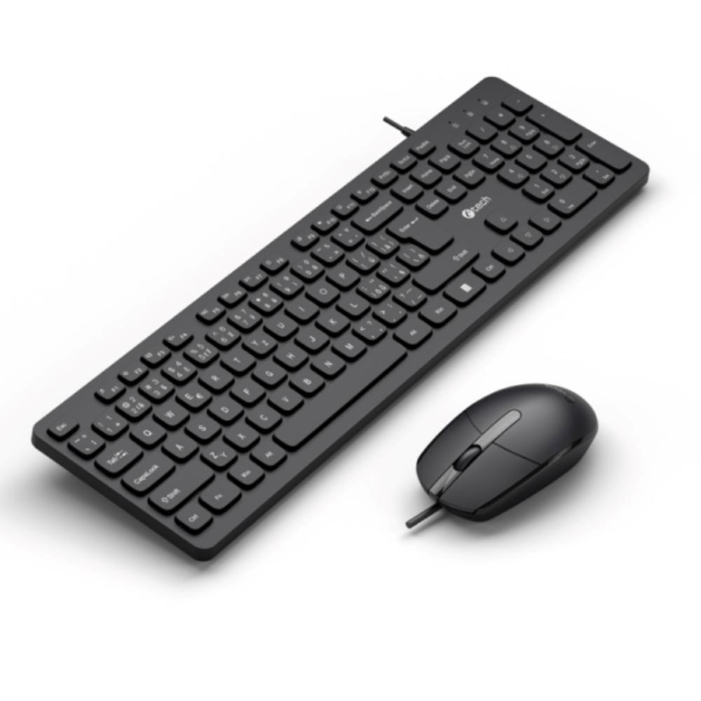 C-TECH Klávesnice KBM-105, drátový combo set s myší, USB, CZ/SK