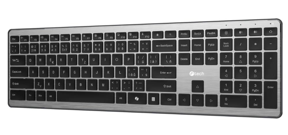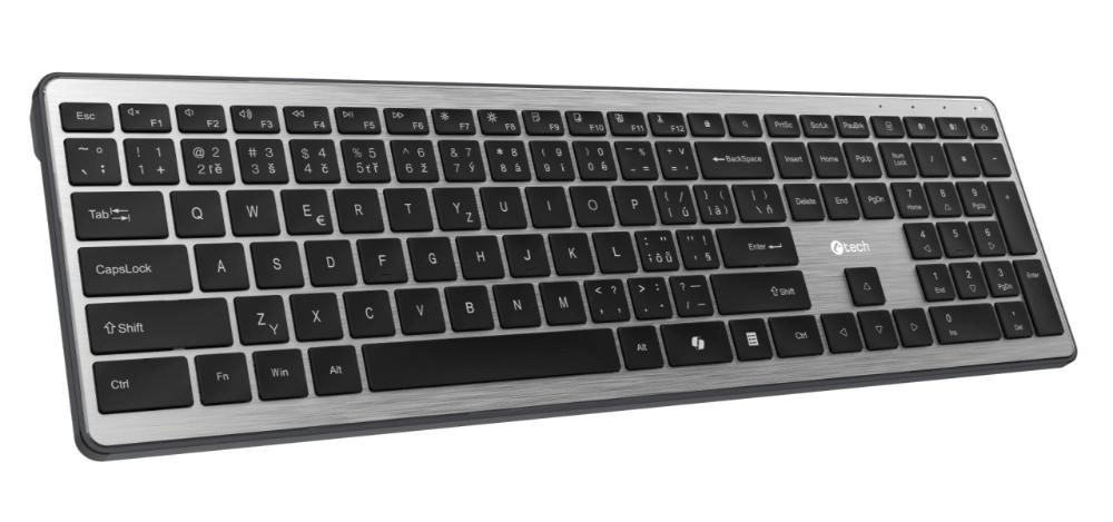 C-TECH Klávesnice Quallis KB-118 Dual mode, bezdrátová, BT5.0 + 2,4GHz, scissors tlačítka, USB nano receiver, CZ/SK