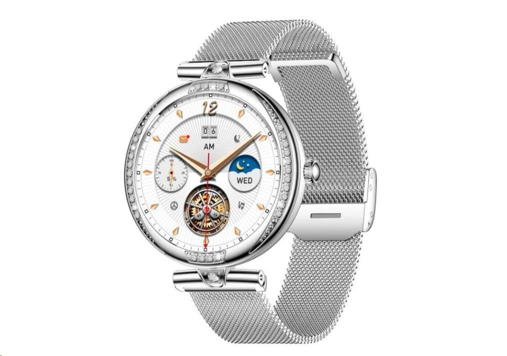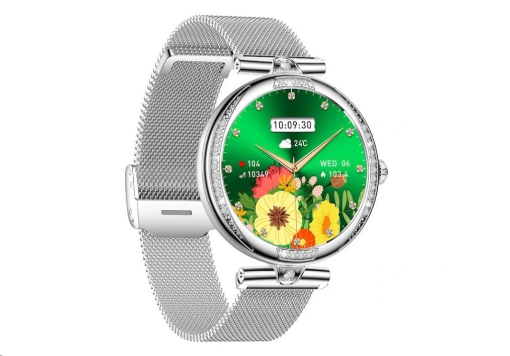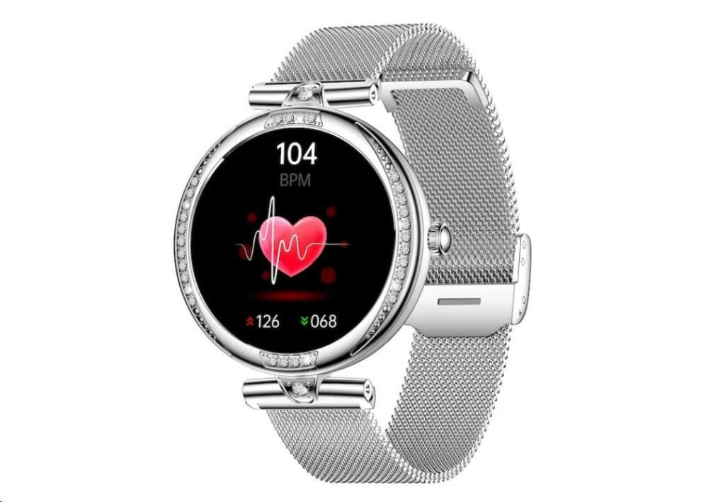Luxusní dámské fitness hodinky CARNEO Seinna HR+ stříbrné jsou skutečný klenot na ruce každé ženy. Kovové tělo osazené broušenými kameny přitáhne pohledy všech. S barevným SUPER AMOLED displejem monitorují vaši denní aktivitu a lze je spárovat s mobilním telefonem, díky čemuž můžete vyřídit telefonický hovor přímo ze zápěstí, nebo vás upozorní na příchozí hovor, SMS nebo zprávu z aplikací.