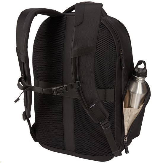 - Boční kapsy na zip se dají roztáhnout tak, aby se do nich vešla láhev s vodou, nebo mohou sloužit jako bezpečné úložiště síťového adaptéru.