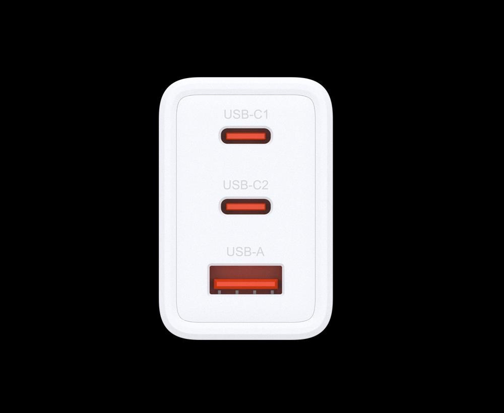 Technologie GaN: Umožňuje výkonné, efektivní a bezpečné nabíjení s komplexní bezpečnostní ochranou 65W rychlé nabíjení: Rychlé nabíjení vašeho notebooku, tabletu, mobilního telefonu a dalších s výstupem až 65W PD 3.0 Tři porty USB-C/USB-A: Obsahuje USB-C x 2 a USB-A x 1 pro nabíjení 3 zařízení současně Vyměnitelné zástrčky: Kompatibilní s univerzálními standardy AU, EU, UK a USA, ideální pro cestovatele Bezpečnostní ochrana: Napájení je deaktivováno při chybách způsobených nadproudem, přepětím, přebitím, přehřátím nebo zkratem.