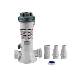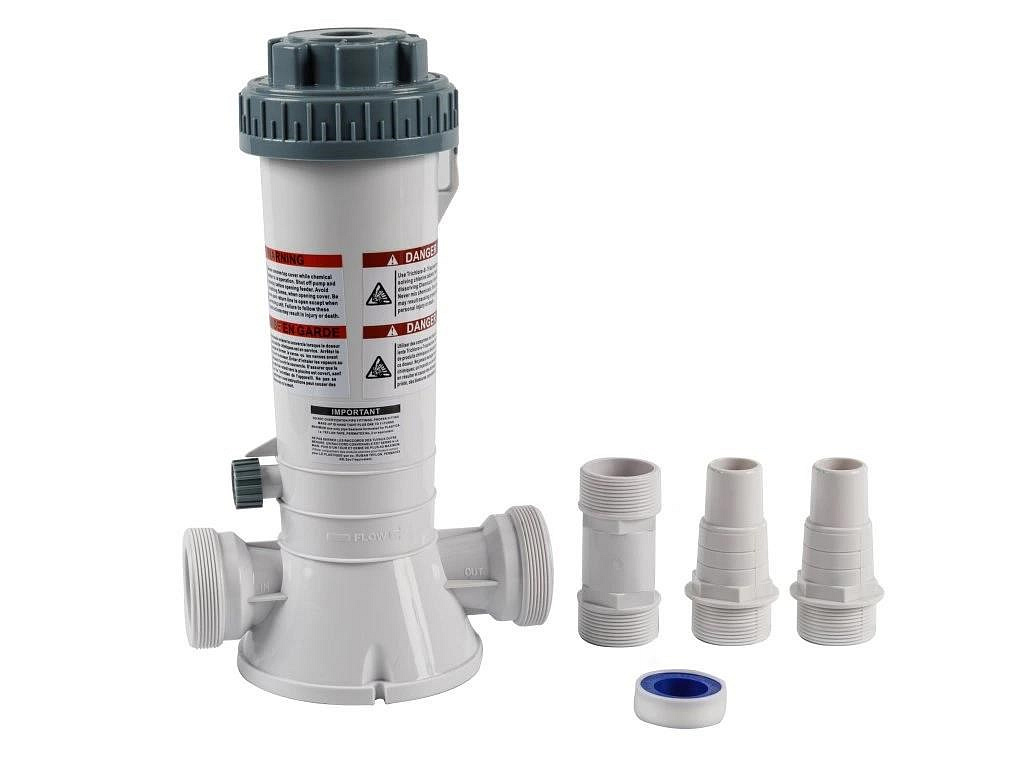 Tento elegantní a vysoce efektivní automatický dávkovač chlóru je ideální volbou pro váš bazén nebo vířivku. Navržený pro snadnou instalaci do zpětné trubky, používá pomalu se rozpouštějící Trichloro-S-Triazinetrione (Tri-Chlor) v podobě velkých nebo malých tablet, nebo tyčinek. Pro maximální bezpečnost a efektivitu doporučujeme používat pouze tento typ chemikálie.