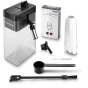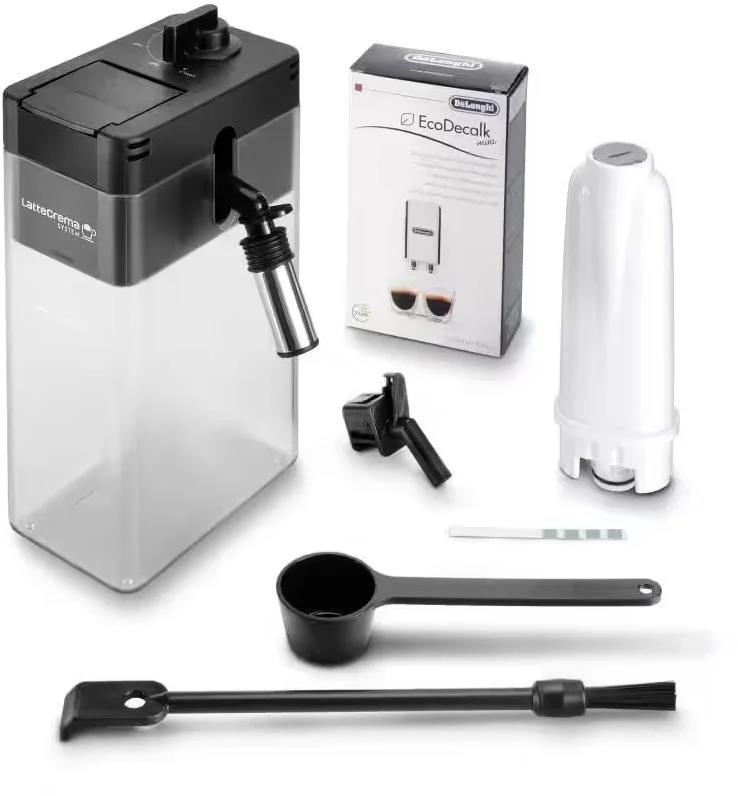Automatický kávovar - velikost zásobníku mlýnku 500 g, do domácnosti a do kanceláře, příkon 1450 W, tlak 19 bar, objem nádržky na vodu 2,2 l, chytrý, možnost nastavení oblíbených nápojů, možnost přípravy dvou šálků zároveň, připravuje nápoj jedním stisknutím, displej, nádoba na vodu, zásobník na mletou kávu, mléčný systém, signalizace potřeby odvápnění / čištění, nastavitelná tvrdost vody a automatické proplachování.