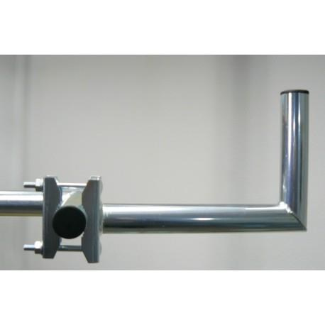 Držák vhodný k připevnění na balkónové zábradlí nebo vodorovnou trubku, pro uchycení satelitních parabol a větších antén.| Technické specifikace: | |