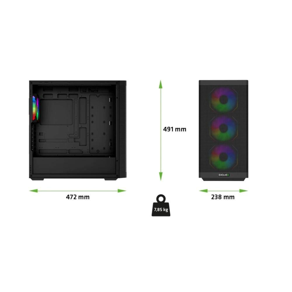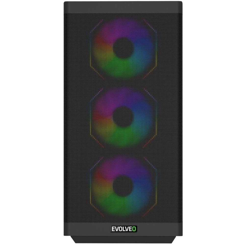 EVOLVEO Scorpio, skříň eATX/ATX, 4x ARGB ventilátor 120mm, boční panel temperované sklo + mřížkovaný přední panel