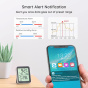 Velký LCD displej zobrazuje aktuální teplotu a vlhkost přehledně a jasně. Vše důležité vidíte na první pohled, bez nutnosti kontrolovat telefon. Displej je ideální pro rychlou vizuální kontrolu v domácnosti, kanceláři nebo skladu. Díky čistému a jednoduchému zobrazení máte neustálý přehled o klimatu.