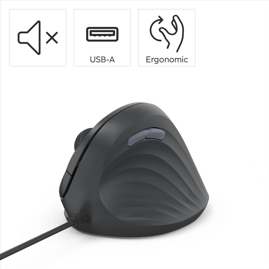 - moderní ergonomická kabelová myš pro pracování s počítačem bez bolesti - vertikální provedení předchází namožení a bolesti ramen a zápěstí - tichá, bez zvuků při klikání pro nerušenou práci - DPI tlačítko pro rychlou změnu rozlišení (DPI 1000/1400/1800) - aktivace AI asistenta v systému tlačítkem - tlačítka s funkcí zpět/vpřed v prohlížeči - pogumovaný povrch myši a kolečka - polymerové kluzné plochy - dlouhý kabel s připojením k USB-A nebo USB-C zásuvce (integrovaný adaptér) - tělo a tlačítka jsou vyrobena z 65% z recyklovaného ABS plastu - balení je 100% bez plastů  Systémové požadavky: - běžné funkce: Windows 11/10, Mac OS 11 nebo novější - tlačítko Assist: Windows 11 s aplikací Microsoft Copilot  Technické parametry: - připojení: USB-A vidlice, USB-C vidlice - počet tlačítek: 7 včetně rolovacího kolečka - rozlišení: 1000/1400/1800 DPI - délka kabelu: 1,8 m - rozměry: 8,6 x 11,5 x 7,1 cm - hmotnost: 110 g - barva: černá.