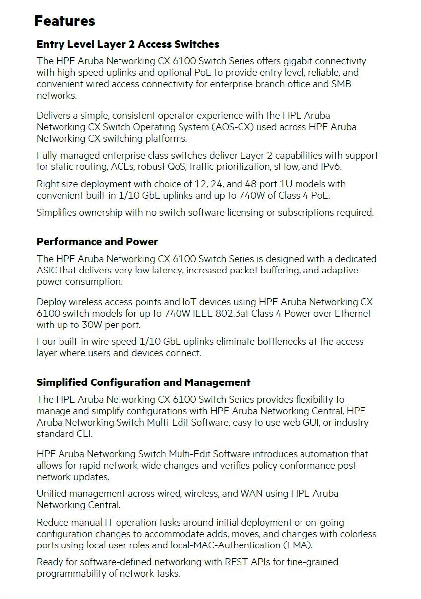 HPE Aruba Networking CX 6100 48G 4SFP+ Switch.