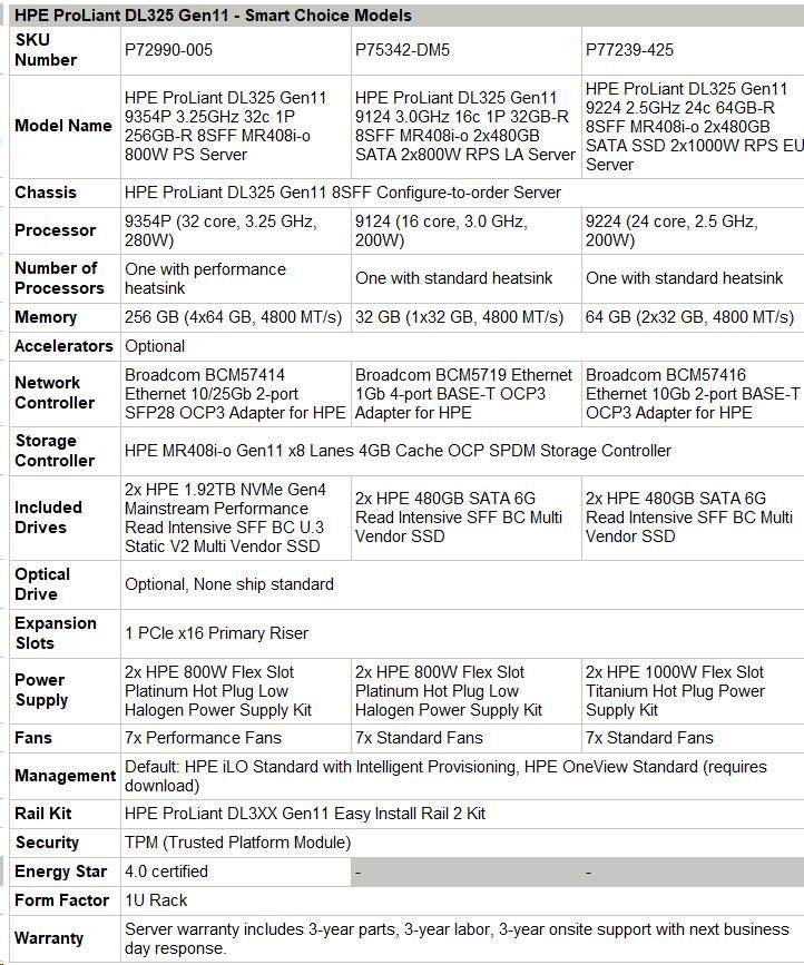 Management | Default: HPE iLO Standard with Intelligent Provisioning, HPE OneView Standard (requires download) |