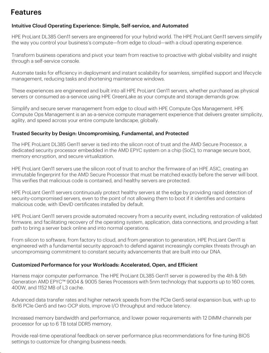 Infrastructure management HPE iLO Standard with Intelligent Provisioning (embedded), HPE OneView Standard (requires download) HPE iLO Advanced, HPE iLO Advanced Premium Security Edition, HPE OneView Advanced (require licenses) and HPE Compute Ops Management