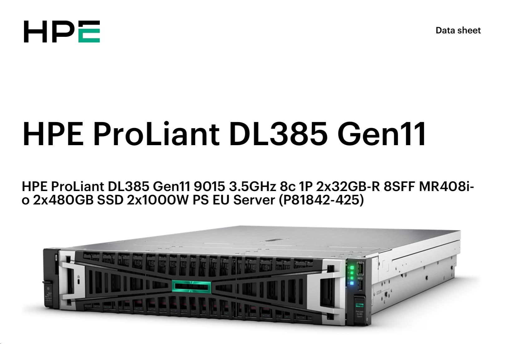 HPE PL DL385g11 AMD EPYC 9015 (3.6/8C) 2x32G (P64985) 2x480G MR408i-o 2x1000W 8SFF 2p10GT Smart Choice