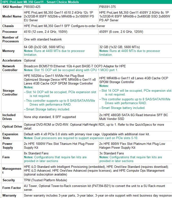 HPE PL ML350g11 4510 (2.4G/12C) 2x32G (P64706) NS204(2x480) MR408i-o 2x1000W 8SFF 4p1Gb Smart Choice.