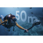 Robustní konstrukce s vodotěsností IPX8 umožňuje bezpečné použití v hloubkách až 50 metrů, ideální pro potápění, šnorchlování nebo profesionální natáčení pod vodou.