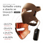 - Flexibilní design – pohodlí a rovnoměrné působení světla. Maska z měkkého potravinářského silikonu dokonale přilne k obličeji a zajišťuje rovnoměrné rozložení světla bez ztrát energie a je pokožkou perfektně snášená. Dálkový ovladač je akumulátorový, takže máte volnost pohybu