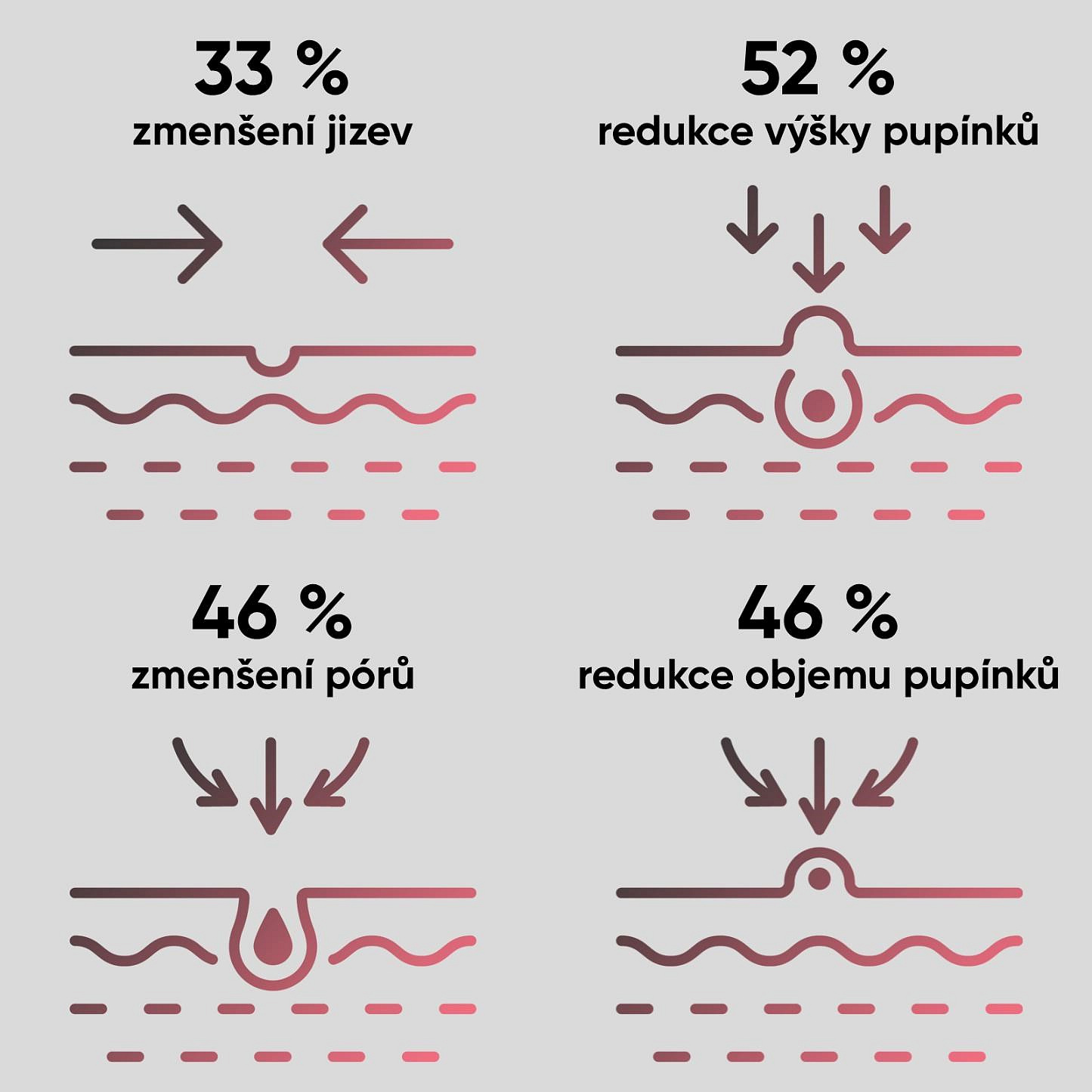 • Klinicky ověřená účinnost: Likviduje více než 99 % bakterií Propionibacterium acnes, redukuje kožní maz o 56 % za 3 dny a zmenšuje objem akné o 63 % za 7 dní.