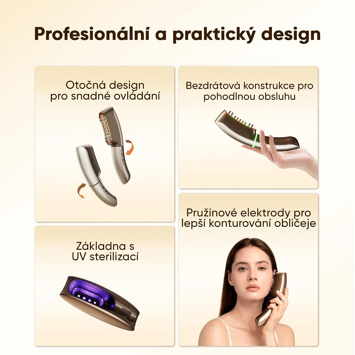 • Komplexní péče 3v1: Jeden přístroj pro omlazení obličeje, tvarování těla a revitalizaci vlasové pokožky.