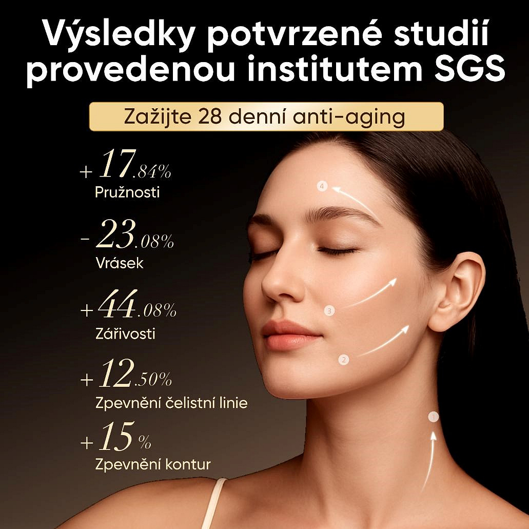 • Synergie s patentovanými séry: Speciálně vyvinutá séra s 18K zlatými nanotyčinkami a mořským kolagenem zvyšují účinnost ošetření až 7,65krát.