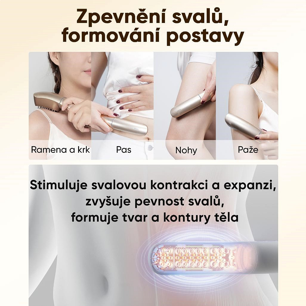 • Péče o tělo (Režim SNE): Intenzivní pulzy simulují masáž hlubokých tkání, stimulují svalové kontrakce, a tím pomáhají zpevnit a vytvarovat problematické partie jako jsou paže, břicho nebo stehna.