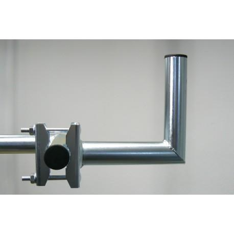 Držák vhodný k připevnění na balkónové zábradlí nebo vodorovnou trubku, pro uchycení satelitních parabol a větších antén.| Technické specifikace: | |