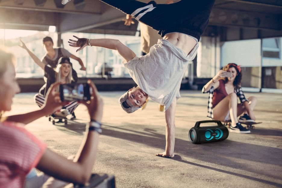 Šťáva vydrží PartyGo1 Play až 15 hodin, v klidu si tak jeho zvuk užívej i na cestách. Když potřebuje dodat energii, upozorní tě indikátor baterie. Ergonomické madlo, přibalený popruh přes rameno, kompaktní velikost a nízká hmotnost jsou další plusy nahrávající tomu, že se reprák stane tvým nerozlučným parťákem. Díky USB-A vstupu zvládne posloužit i jako powerbanka. Aby toho nebylo málo, rozumí si s hlasovými asistenty Siri a Google Assistant a při spárování s telefonem umožňuje ovládání hovorů.