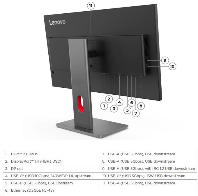 | Speciální funkce | Factory Calibration: Avg. Delta EPicture In Picture (PIP) / Picture By Picture (PBP) Support Lenovo ThinkColour (Lenovo Accessories and Display Manager) Support Lenovo ThinkColour supports Windows 10 & 11, Mac OS (functions vary across systems). Lenovo Accessories and Display Manager is formerly Lenovo Display Control Center. KVM Switch (with eKVM) LDFM (Lenovo Display Fleet Manager) Mirrored Power Button Multi-sync Natural Low Blue Light Smart Power The Smart Power function intelligently detects overall power consumption and dynamically manages the power delivery to each device |