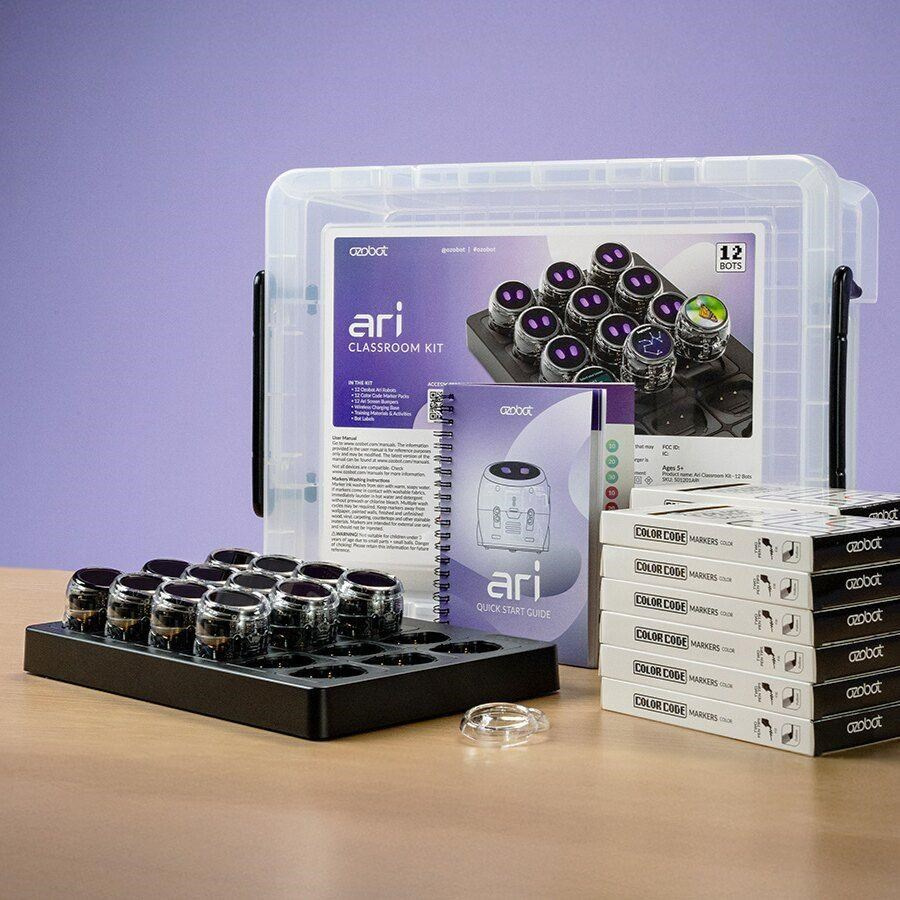 Co zůstalo beze změny, jsou vlastnosti, které na Ozobotech máme tolik rádi – kapesní rozměry a možnost naprogramovat ho pomocí barevných kódů, Ozobot Editoru a programovacího jazyku Python, přičemž další jazyky budou brzy doplněny. Tato sada je určena pro práci ve větším týmu. Vedle 12 Ozobotů Ari obsahuje nabíjecí stanici, 12 sad omyvatelných fixů a soubor aktivit pro snadný začátek.