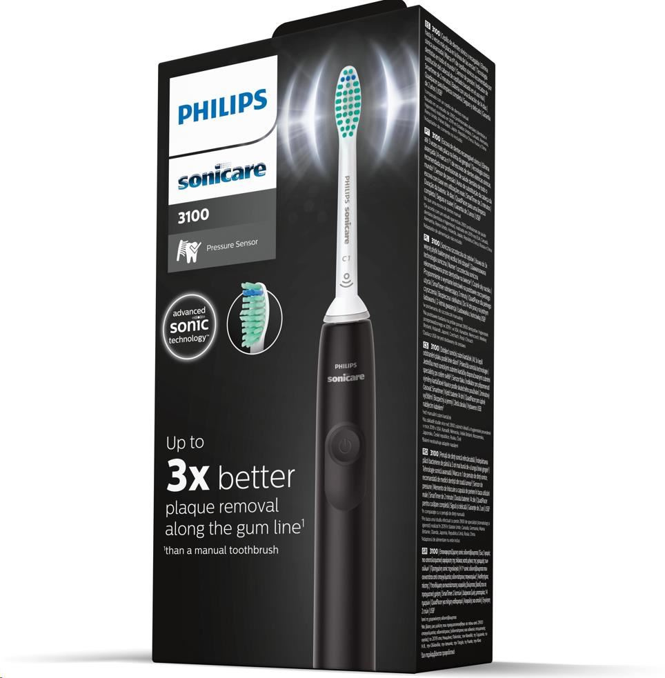 Philips HX3671/14 Sonicare 3100, zubní kartáček, pro dospělé, 31000 kmitů/min, časovač, tlakový senzor, indikátor, černý