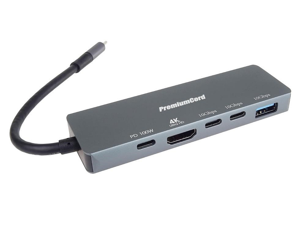 PremiumCord Adaptér USB-C na 4K@60Hz HDMI + 10G USB3.2 A + 10G 2x USB-C + PD