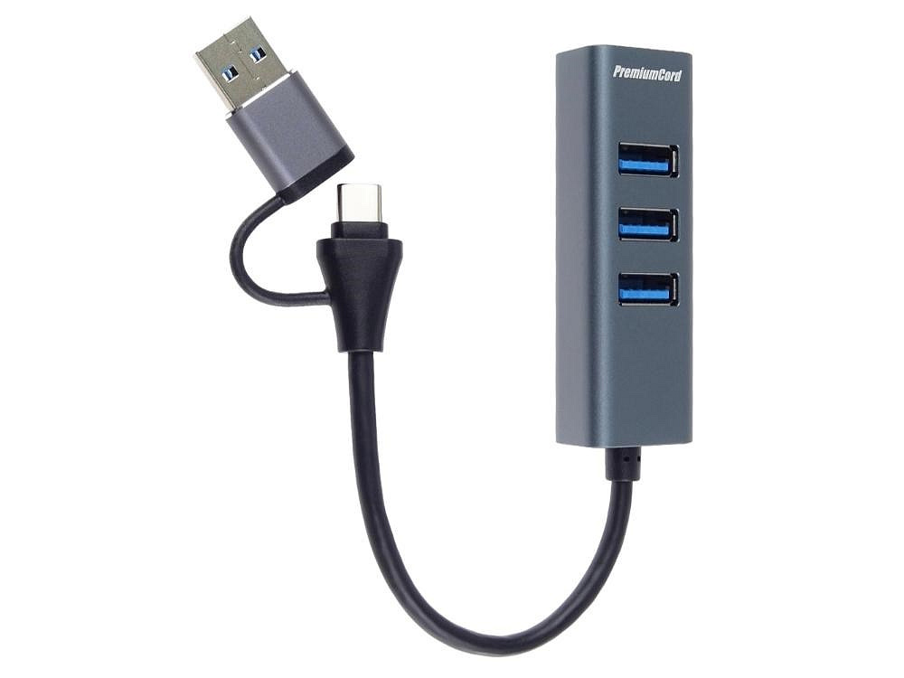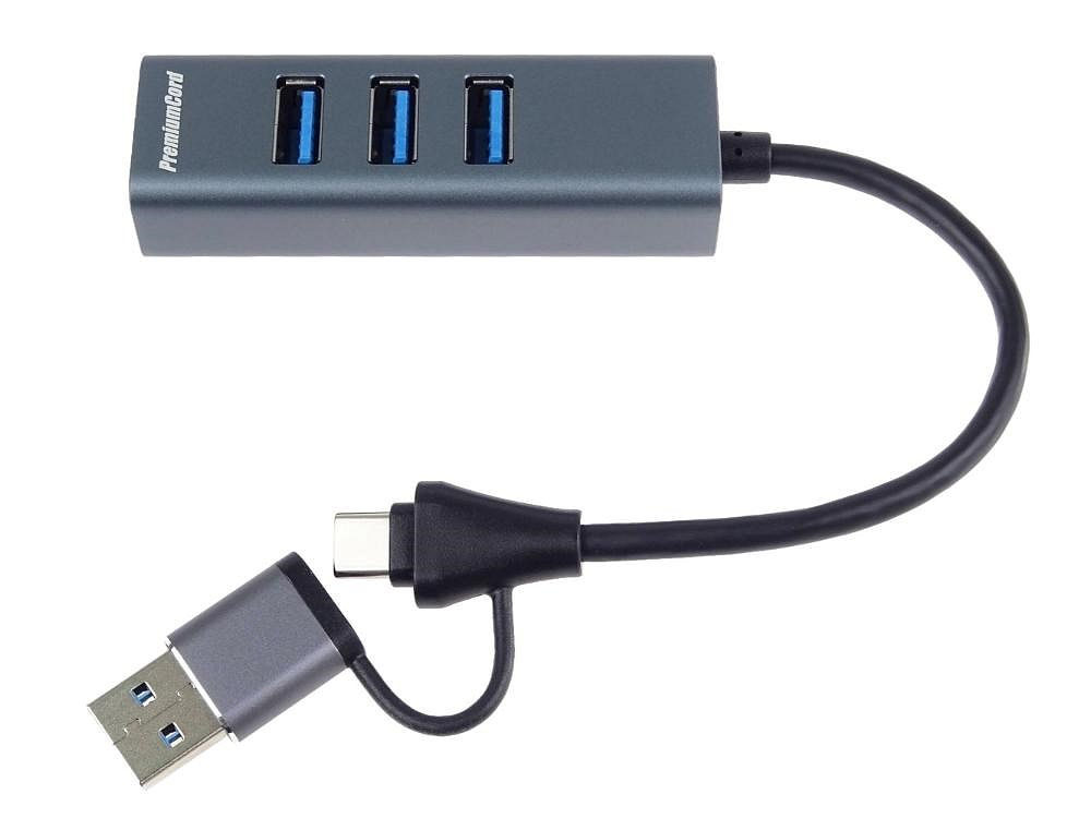 PremiumCord Hub 5G SuperSpeed, USB-C a USB-A na 4x USB-A 3.2 Gen 1