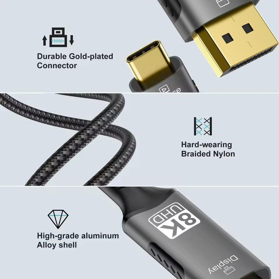 Kabel s nejnovější specifikací DP1.4 přichází, podporuje rozlišení až 8K@60 Hz s HDCP 2.2, umožňuje připojit a zobrazovat na nejnovějších monitorech nebo televizorech v rozlišení ultra HD 8K@60Hz