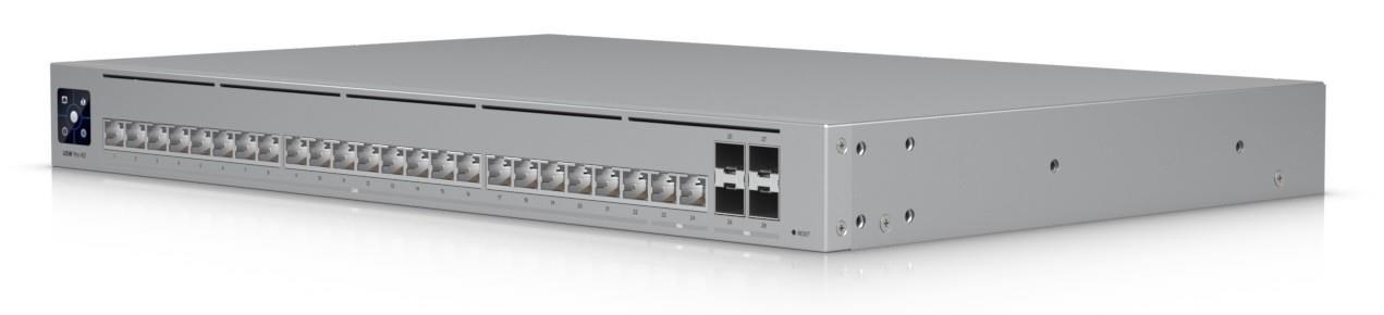 Popis produktu Ubiquiti USW-Pro-HD-24 je 24 portový PoE switch s podporou L3 funkcí. Switch nabízí 22x 2.5Gb a 2x 10Gb porty porty. Dále je switch vybaven 4x SFP+ porty a je připraven i pro redundatní napájení pomocí Ubiquiti UniFi SmartPower Redundant Power System (USP-RPS). Klíčové vlastnosti • 1.3" dotykový displej • 22x 2.5G + 2x 10G ethernet • 4x SFP+ • Možnost redundantního napájení (USP-RPS) • Technologie Etherlighting pro Ethernet i SFP • L3 funkce DHCP/DHCP relay, Inter-VLAN routing, Static routing, Network isolation with ACLs • Správa pomocí aplikace UniFi Network v8.6.9 a novější Obsah balení • Switch • Napájecí kabel 230V • Úchyty do 19" racku • (4) Plovoucí matka • (4) Šroub 10#-32 • (8) Šroub M4 • (4) Gumová samolepicí podložka Technické parametry Konektory a rozhraní Rychlost LAN:(2) 10/5/2.5/1Gbps + (22) 2.5/1Gbps, 100/10Mbps Optické rozhraní:(4) 1G/10Gbps Napájení Typ napájení:Ze sítě (230V) Redundantní napájení:Ano Max. spotřeba energie [W]:50 Napájení přes konektor/svorkovnici:230V AC Fyzické charakteristiky Provedení:Rackmount Ventilátory:Ano Šasi:Kovové Tlačítka:Reset Provozní teplota [°C]:-5 až 40 Šířka [mm]:442 Výška [mm]:44 Hloubka [mm]:285 Obecné Rychlost přepínání [Gbps]:230 Rychlost předávání paketů [Mpps]:171 Software Management:UniFi Network Funkce:L3 Výchozí IP adresa:192.168.1.20, Dynamická z DHCP Výchozí jméno a heslo:ubnt / ubnt.