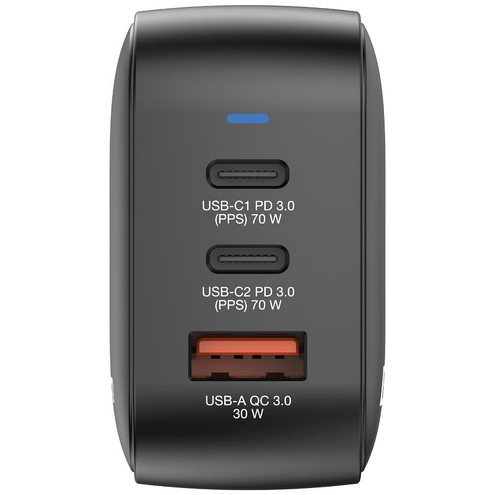 - 70W mini nabíječka GaN do zdi se 3 výstupními porty: 2 x USB-C® PD 70W a 1 x USB-A QC 3.0
