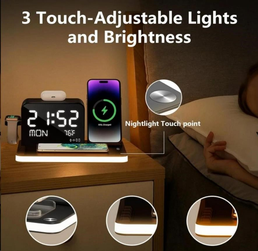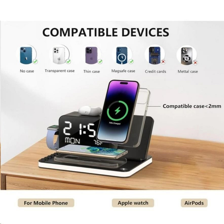 WG Multifunkční zařízení 7v1 (hodiny, datum, teplota, nabíječka telefon+hodinky+sluchátka)