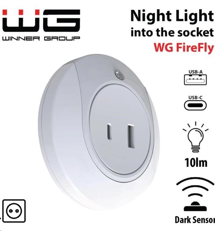 WG - Noční LED světlo do zásuvky s USB / WG FireFly / white