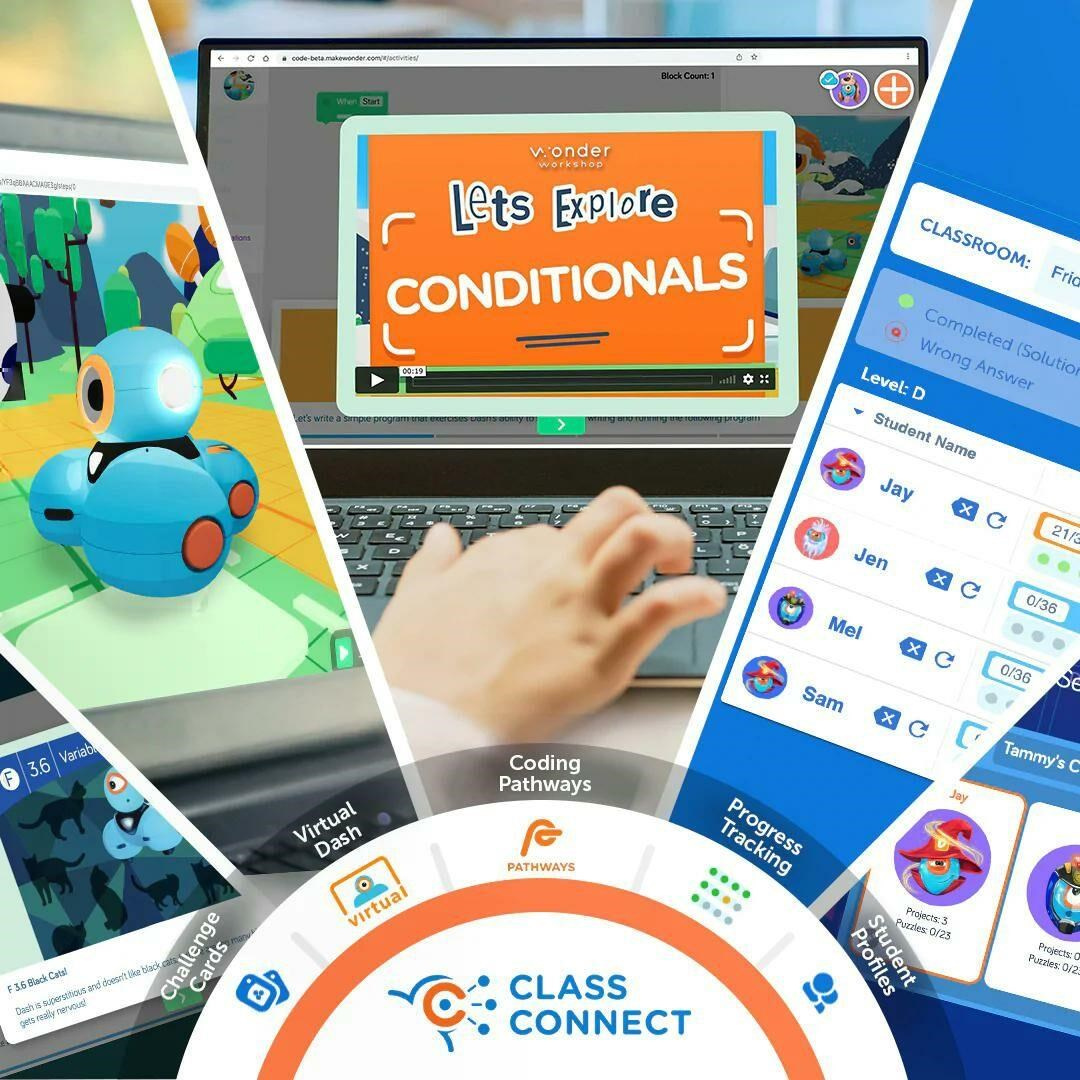 Wonder Pack obsahuje veškerý hardware a software, který potřebujete k tomu, abyste dětem ve třídách zpřístupnili programování! Toto balení obsahuje Sketch Kit, který z robota Dashe udělá kreslící nástroj. Součástí je také Launcher, Gripper Building Kit a dvojice LEGO konektorů – ideální způsob, jak získat kompletní sadu příslušenství! Součástí tohoto balení je také roční licence na Class Connect pro 2 studenty. Díky platformě Class Connect mají žáci k dispozici rozsáhlou zásobu lekcí, aktivit a hádanek, které mohou plnit v aplikaci Blockly a naučit se tak důležité dovednosti v oblasti programování a aplikovat je na reálné příběhové výzvy. Obsah balení: Dash robot Sketch Kit Launcher Gripper Building Kit Building Brick Connectors.
